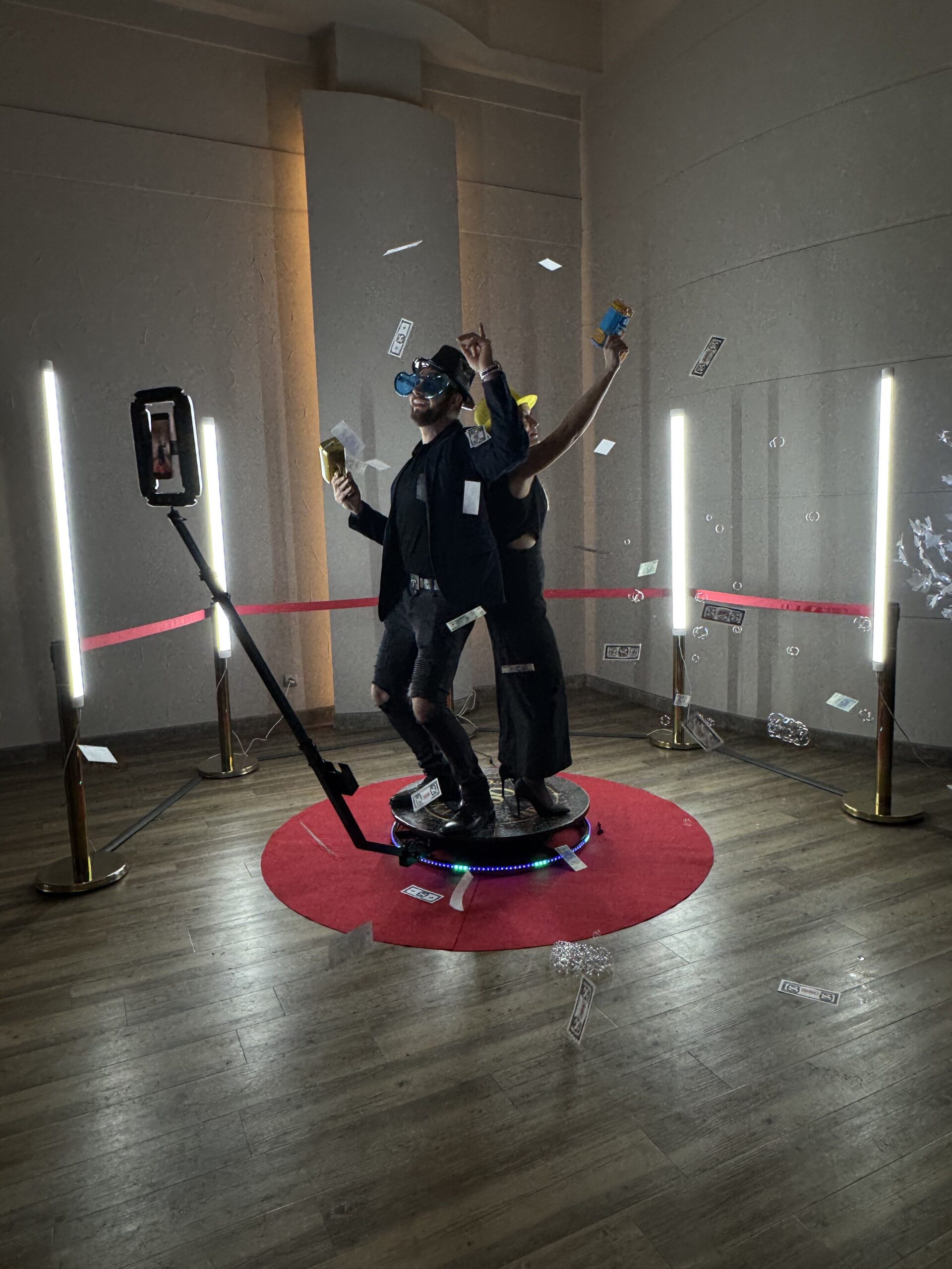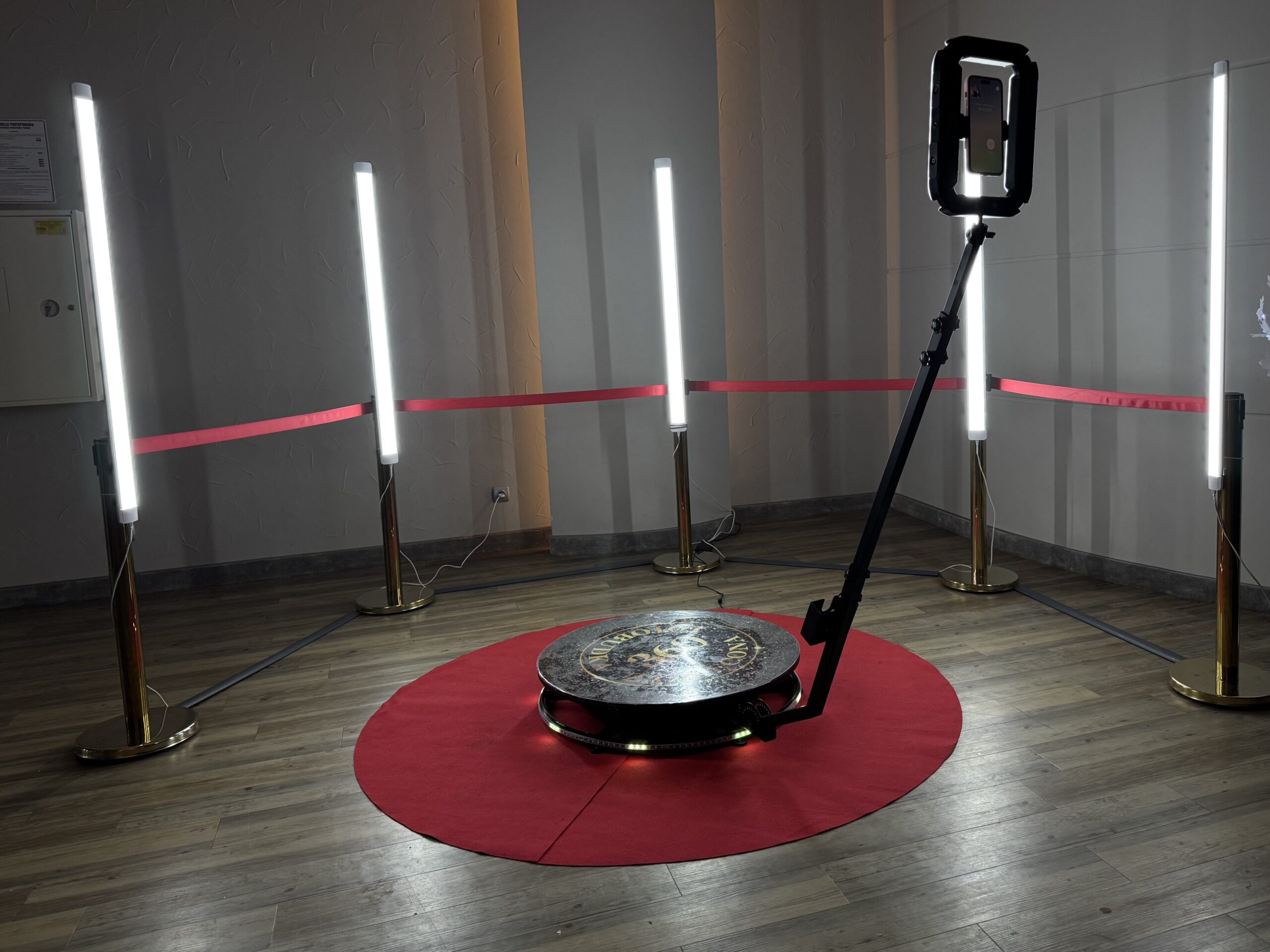 Fotobudka 360 wymaga płaskiej powierzchni o minimalnej przestrzeni 3×3 m. Może być ustawiona zarówno wewnątrz, jak i na zewnątrz (w przypadku eventów plenerowych konieczne jest zabezpieczenie przed deszczem).