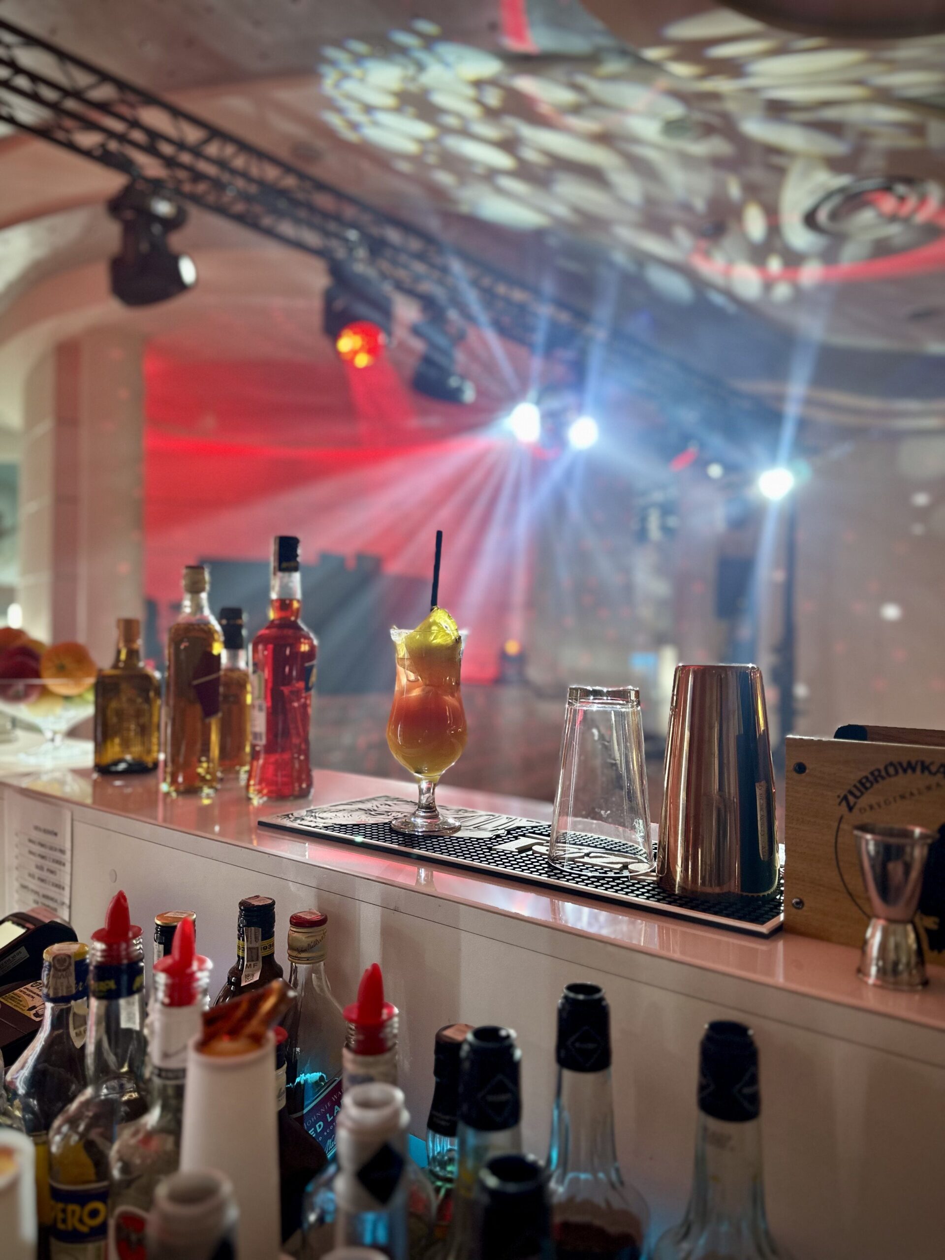 Wieczór uświetniła strefa drink baru, w której nasi barmani przez całą noc serwowali dziesiątki oryginalnych koktajli – zarówno z autorskiej karty, jak i na specjalne życzenie gości. Profesjonalna obsługa i efektowne przygotowanie drinków wprowadzały dodatkowy element show, podkreślając karnawałowy charakter imprezy.